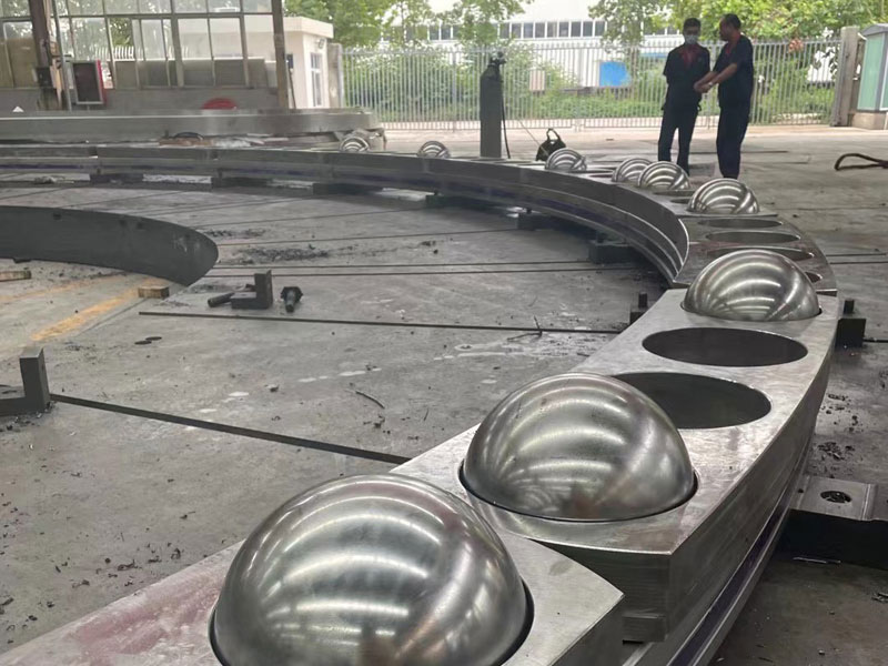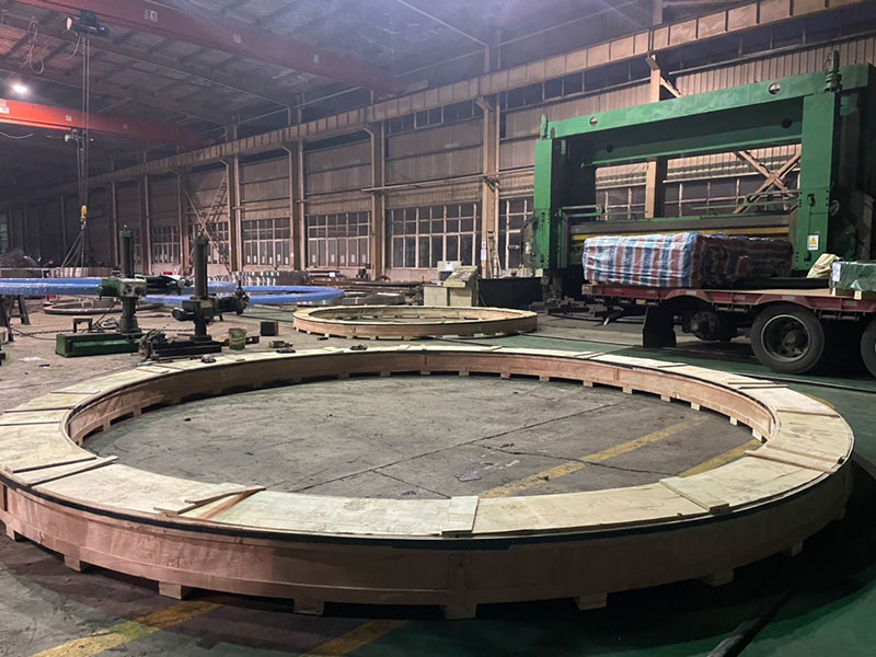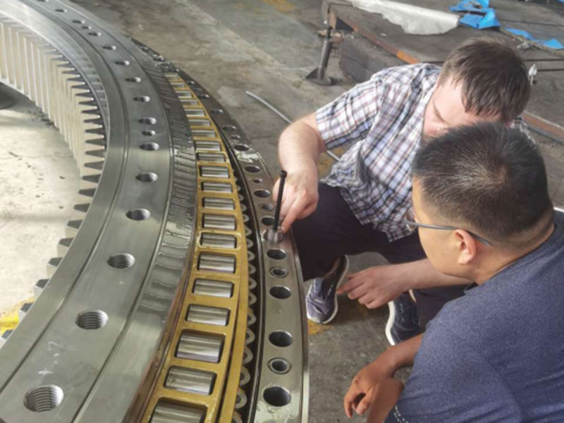 Im Sommer fragte uns einer unserer alten Kunden, ob wir Lager mit einem Durchmesser von 11 Metern herstellen könnten. Damals lag der maximale Außendurchmesser von unseren Lagerprodukten bei 9 Metern. Aber wir scheuten auch vor schwierigen Anfragen nicht zurück. Nach einem Treffen mit unseren Ingenieuren und der Erforschung verschiedener Maße wie Sicherheitsfaktor, Tragfähigkeit und Kippmoment kamen wir zu dem Schluss, dass es möglich ist, den Zahnring, die Stahlkugel und den Käfig individuell anzupassen. Letztendlich haben wir den Auftrag ausgeführt und die Anforderungen unseres Kunden voll erfüllt. Dies war ein bedeutendes Ereignis, das es uns ermöglichte, die Grenzen der Möglichkeiten von Großlagern zu durchbrechen.